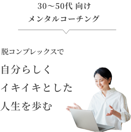 「脱コンプレックスメンタルコーチング」のコーチは、30年1,000人以上の人材育成・支援に従事した経験を持ちます。 そんな経験を持つ私自身も、昔は表面では仮の自分を装いながら、心の中ではずっと”本当は出来ない自分”を受け入れる事ができず、出来ない事にこだわって長い間自分を苦しめてきました。 しかし、メンタルコーチングに出会い本格的に勉強しはじめてから、本当の意味で自分を認め、幸せを感じる事ができるようになりました。 コーチの私自身がコーチングを通して変われた経験から、一人でも多くの人が毎日をキラキラと輝くように生きられたらという想いで、現在コーチングを提供しています。
